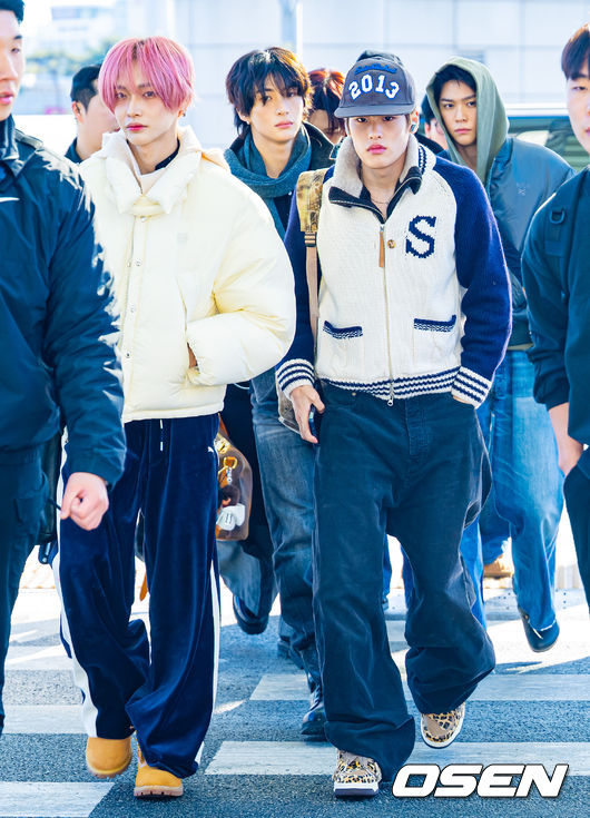 라이즈가 출국길에 포즈를 취하고 있다. 2025.12.05 /rumi@osen.co.kr