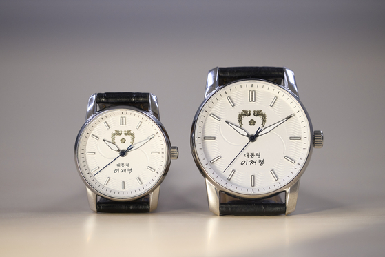 강유정 대통령실 대변인은 오늘(5일) 브리핑을 통해 "시계 앞면에는 대통령 휘장과 서명이 들어갔으며, 전통의 태극 문양을 넣어 제품의 심미적 완성도를 높이면서도 대한민국 정통성을 잇고 국민통합을 기원하는 의미를 담았다"고 밝혔습니다.