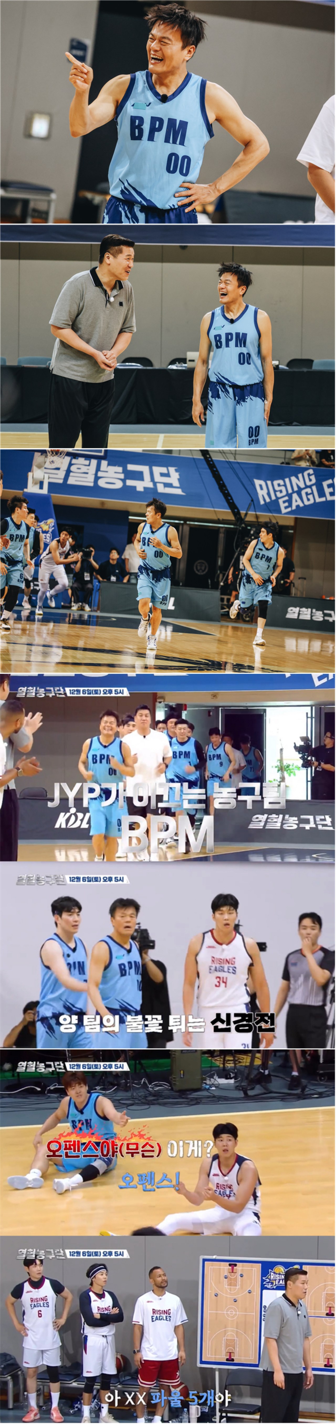 오는 6일 방송될 SBS 스포츠 예능 '열혈농구단'에서는 라이징이글스가 JYP엔터데이먼트 프로듀서 박진영의 팀 'BPM'과 정면승부를 펼친다. 공개된 예고만으로도 "이게 예능이 맞나"라는 반응이 나올 정도로 양 팀의 치열한 공방에 농구 팬들의 기대감이 커지고 있다.