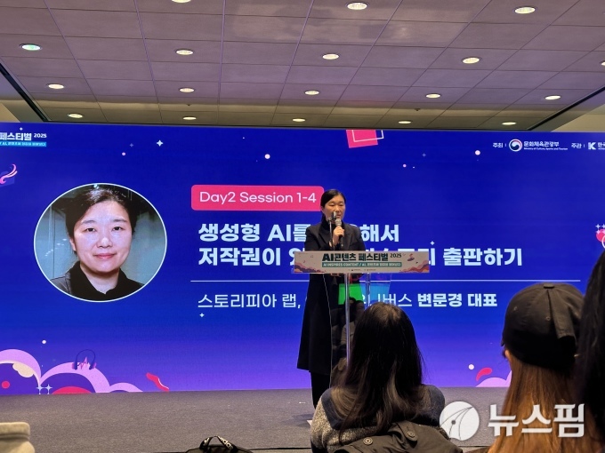 [서울=뉴스핌] 이지은 기자 = 한국콘텐츠진흥원의 'AI콘텐츠 페스티벌 2025'에 참석한 변문경 메타유니버스·스토리피아 랩 대표. 2025.12.05 alice09@newspim.com |
