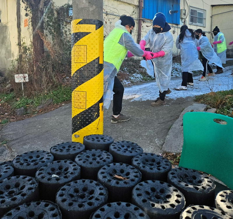 5일 대전 대덕구 덕암동에서 소외계층에게 연탄을 전달한 산림청 봉사동호회 '나눔을 바르는 사람들'. 산림청 |