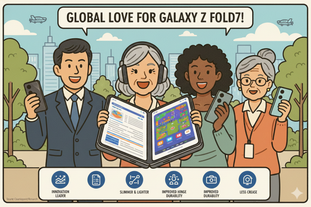 삼성전자의 점유율이 늘어는 데는 갤럭시 Z 폴드7·플립7의 역할이 컸다. 특히 폴드7은 더 얇아진 프레임과 가벼워진 하드웨어, 향상된 힌지 내구성, 개선된 주름 시인성 등을 통해 프리미엄 매력을 높이며 플립 모델보다 큰 주목을 받았다.