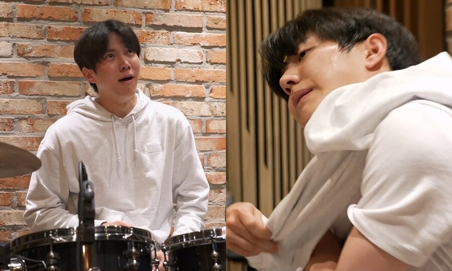 도운은 "힘을 기르는 연습 중이다"라며 마치 운동을 하듯 땀을 뻘뻘 흘리며 격렬한 드럼 연주를 선보여 모두를 놀라게 한다. 연주를 끝내고 일어난 그의 엉덩이가 땀으로 흠뻑 젖은 모습도 공개되는데, 선명하게 남은 노력의 흔적이 감탄과 웃음을 동시에 유발한다.