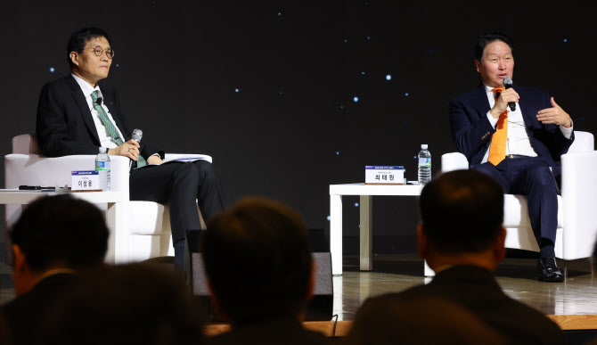 최 회장은 이날 대담에서 “AI가 스스로 금융거래를 할 수 있는 경우가 계속 출몰하고, 그 다음에는 또 실제 결제수단과 연결된 AI 얘기들도 나온다”면서 “대한민국은 아직 화폐가 (전세계적으로) 상당히 통용되는 화폐가 아니다 보니 기축통화에 낄 수 있는 방법이라든가, AI 전략 차원에서 생각해봐야 할 때가 아닌가 싶다”며 디지털 화폐에 대한 이 총재의 견해를 물었다.