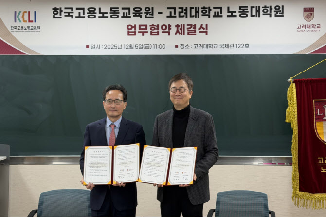 김진영 고려대 노동대학원 원장은 “이번 협약을 계기로 교육·연구 역량을 더욱 효율적으로 강화하고 두 기관이 노동의 미래 의제를 함께 선도하기를 기대한다”고 말했다.