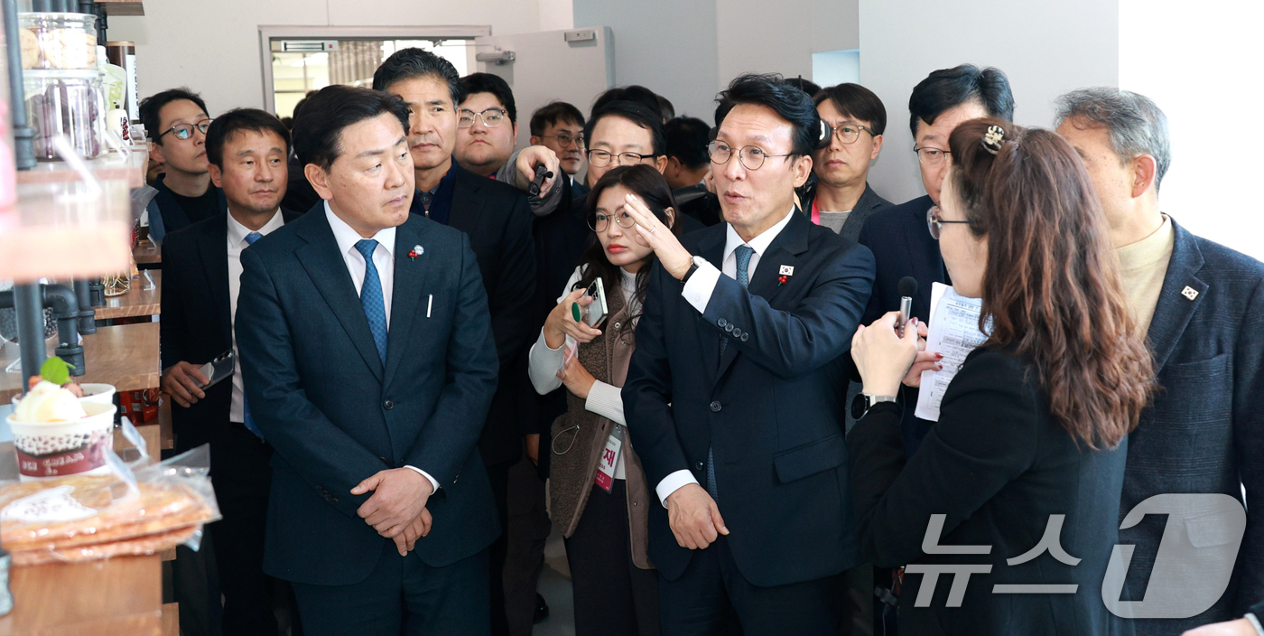 (익산=뉴스1) = 김민석 국무총리가 5일 전북 익산시 한국식품산업클러스터진흥원 청년식품창업센터에 방문해 창업센터 시찰을 하고 있다. (전북사진기자단) 2025.12.5/뉴스1