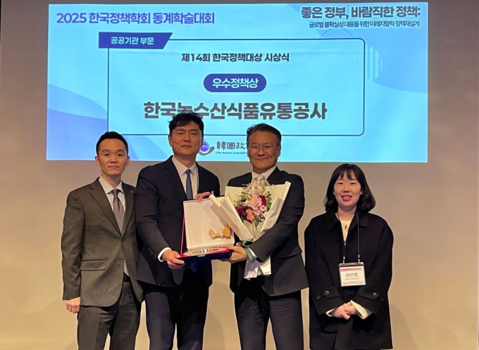 '한국정책대상'은 매년 정책의 창의성, 파급효과 등을 평가해 우수 공공기관 정책사례를 발굴하고 있다. 올해는 aT를 포함해 총 15개 기관을 선정했다.