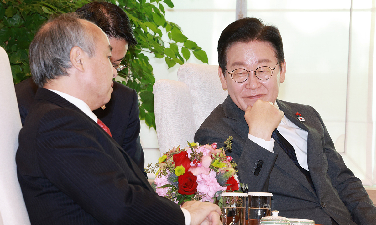 이 대통령은 이날 용산 대통령실에서 손 회장을 접견하고 “우리 대한민국 정부는 인공지능이 가지는 유용함과 위험성을 동시에 인지하고 있어서 위험성은 최소화하고 유용성 측면에서 많은 투자와 기대를 하고 있다”며 “한·일 간의 AI 분야에 관한 협력이 매우 중요하다고 생각하고 거기서 손 회장이 일종의 가교 역할을 해줬으면 하는 바람을 갖고 있다”고 말했다. 이 대통령은 손 회장에게 “이전에도 김대중 전 대통령과 문재인 전 대통령께 정말 좋은 제안을 해주셔서 대한민국 경제 발전이나 국가 발전에 정말 크게 도움이 됐다”면서 “AI 관련해서 대한민국이 세계 3대 강국을 지향하며 많은 노력을 기울이고 있는데 좋은 제안과 조언을 부탁한다”고 당부하기도 했다.