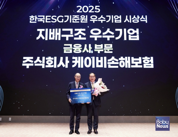 KB손해보험(대표이사 사장 구본욱)은 4일 오전, 서울 영등포구 한국거래소에서 열린 '2025년 한국ESG기준원(KCGS) 우수기업 시상식’에서 '지배구조 부문 우수기업’으로 선정됐다고 5일 밝혔다.