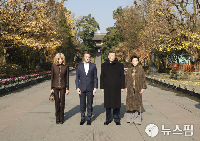 시진핑(習近平) 중국 국가주석과 펑리위안(彭麗媛) 여사가 에마뉘엘 마크롱 프랑스 대통령과 브리지트 마크롱 여사와 함께 5일 쓰촨(四川)성 청두(成都)시에서 기념촬영을 하고 있다. 마크롱 대통령 대통령은 지난 3일 베이징에 도착해 4일 중프정상회담을 진행했다. 5일 양국 정상은 청두시를 함께 방문해 오전 청두시 두장옌(都江堰)을 찾았으며, 오찬도 함께 했다. [신화사=뉴스핌 특약] 조용성 특파원 = 2025.12.05 ys1744@newspim.com |