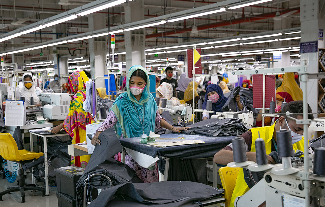 2021년 7월 5일(현지시간) 방글라데시 다카에 있는 한 의류 공장의 여성 노동자들이 공장에서 일하고 있다. 게티이미지 |