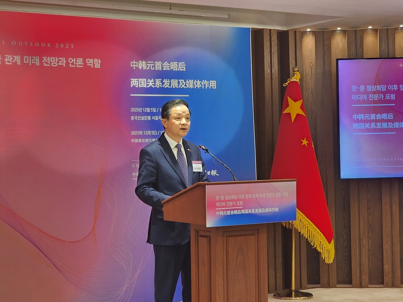 | 5일 중국건설은행 서울지점 미디어 전문가 포럼에서 환영사를 하는 다이빙 주한 중국대사 |