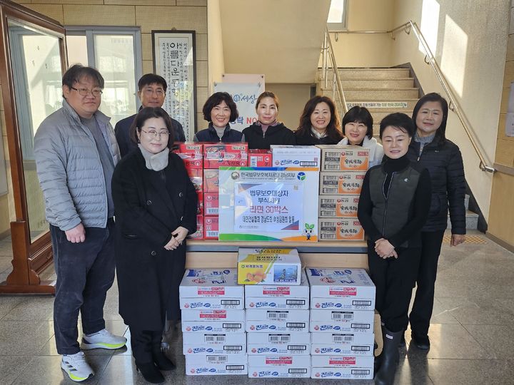 [창원=뉴시스]홍정명 기자 = 대한건설협회 경남도회 여성임원진 일동은 지난 4일 법무보호복지공단 경남지부를 방문해 법무보호대상자를 위한 라면 30박스, 과일 등 후원물품을 전달했다고 5일 밝혔다.