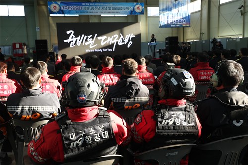 진정희 대구119특수대응단 단장은 경과보고에서 "항공대 창설 30년을 맞이해 더 빠르고, 안전하고, 전문적인 항공 대응 역량을 확보해 더 강한 항공대를 만들겠다"고 말했다.