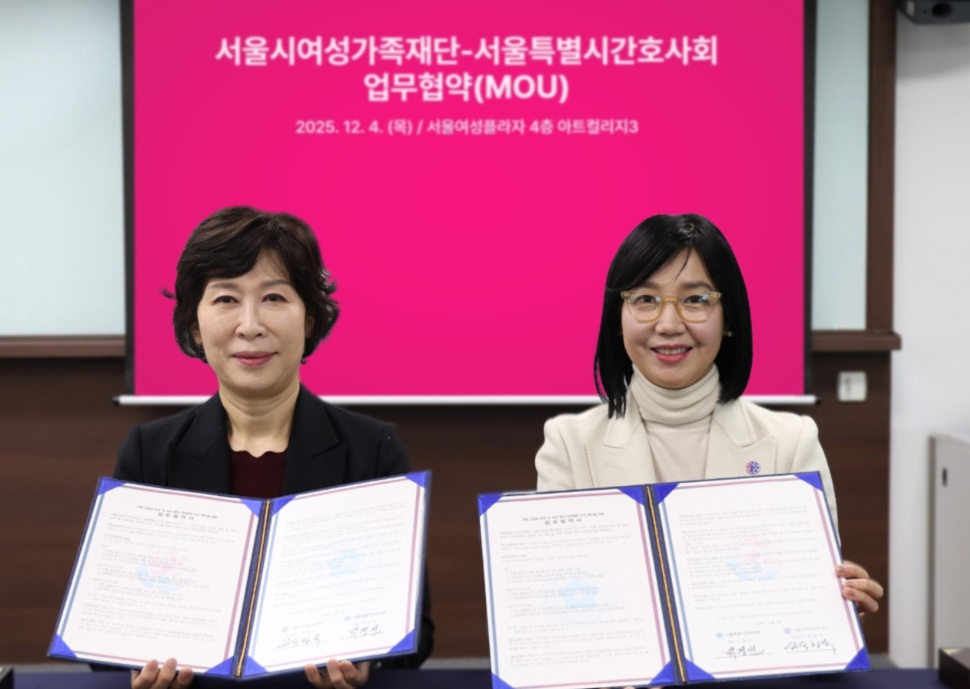 서울시여성가족재단(대표 박정숙)은 서울특별시간호사회(회장 박정선)와 12월 4일 아동 건강권 보호와 보건·간호 분야 양성평등 확산을 위한 업무협약(MOU)을 체결했다고 밝혔다.