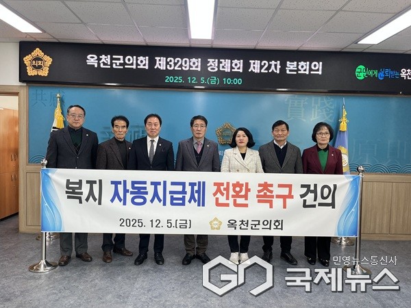 (옥천=국제뉴스) 이재기 기자 = 충북 옥천군의회(의장 추복성)는 5일 열린 제329회 제2차 정례회 제2차 본회의에서 '복지 사각지대 해소를 위해 복지 자동지급제 전환 촉구 건의안'을 만장일치로 채택했다.