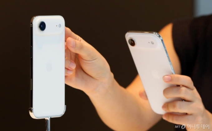 [서울=뉴시스] 김혜진 기자 = 19일 서울 중구 명동 애플스토어에서 고객들이 애플 신제품 아이폰 에어 제품을 살펴보고 있다. 2025.09.19. jini@newsis.com /사진=김혜진 |