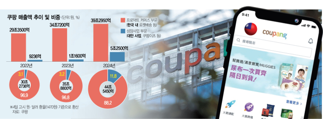 5일 시장조사 기관 아이마크(IMARC)그룹에 따르면 대만의 e커머스 시장 규모는 지난해 1070억 달러에 달하며 2033년까지 연평균 28% 성장할 것으로 전망된다. 이는 쿠팡의 실적에서도 드러난다. 쿠팡 사업보고서에 따르면 대만 사업을 포함한 성장사업 부문(대만 쿠팡·쿠팡이츠 등)의 매출액은 2022년 9236억 원에서 2024년 5조 2500억 원으로 불과 2년 만에 468% 급증했다. 쿠팡 전체 매출에서 성장사업 부문이 차지하는 비중 역시 2022년 3.1%에서 지난해 11.8%까지 커졌다.