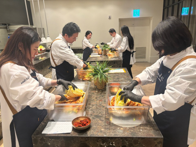 하얏트 체인의 호텔 '안다즈 서울 강남'은 김장철을 맞아 지난달 29·30일 이틀간 안다즈 서울 강남 내 비욘드 더 글라스에서 '제철의 맛 김장 클래스'를 진행했다. 안다즈 서울 강남의 '김치 쿠킹 클래스'는 올해가 처음으로, 김장을 단순한 전통의 재현이 아닌 제철의 맛과 지속 가능한 식문화를 나누는 미식 경험으로 기획했다고 한다.