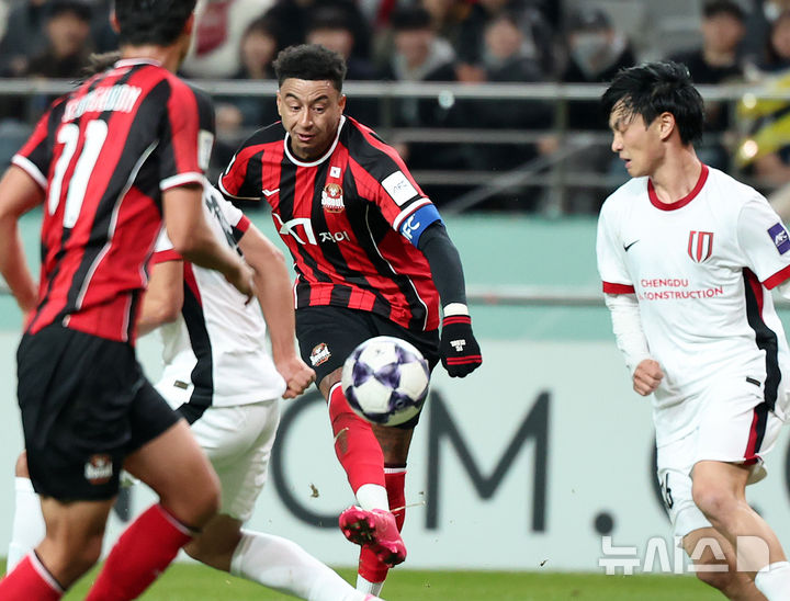 [서울=뉴시스] 조성우 기자 = 4일 오후 서울 마포구 서울월드컵경기장에서 열린 2025-2026 아시아축구연맹(AFC) 챔피언스리그 엘리트(ACLE) 리그 스테이지 4차전 FC서울과 청두 룽청의 경기 전반전, FC서울 제시 린가드가 슛을 시도하고 있다. 2025.11.04. xconfind@newsis.com |