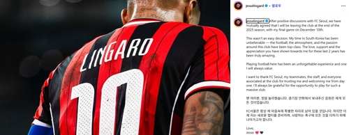 린가드도 자신의 SNS를 통해 "FC서울은 항상 마음속에 특별한 자리로 남아 있을 것"이라며 "이제 새로운 챕터를 준비하며 사랑하는 축구에 모든 것을 다하기 위해 나아가고자 한다"고 작별 인사를 전했습니다.