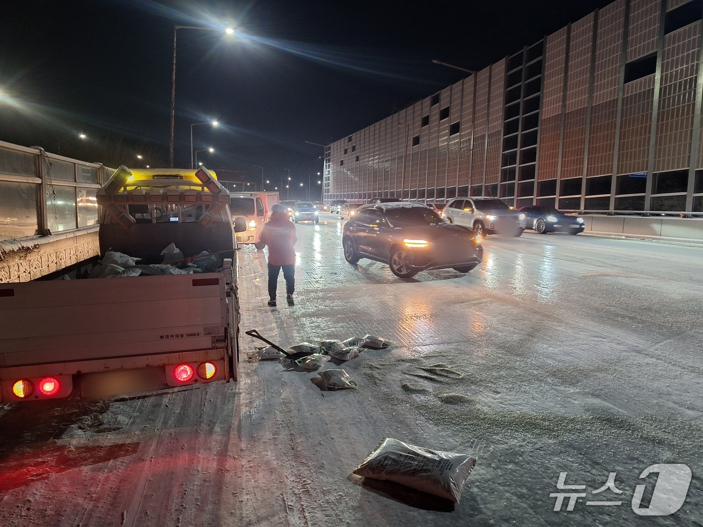시는 관리·운영 주체가 아니지만 시민들의 교통체증 해소를 위해 오후 10시30분께 상하행선 모두 구간에 제설 작업을 펼쳤다. 도로통제 해제는 하행선은 오후 11시에, 상행선은 이날 오전 1시에 각각 이뤄졌다.