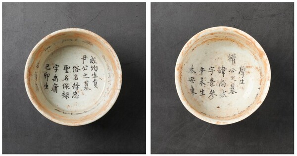 윤지충 백자사발지석(왼쪽)과 권상연 백자사발지석(오른쪽) ⓒ완주군 (포인트경제) |