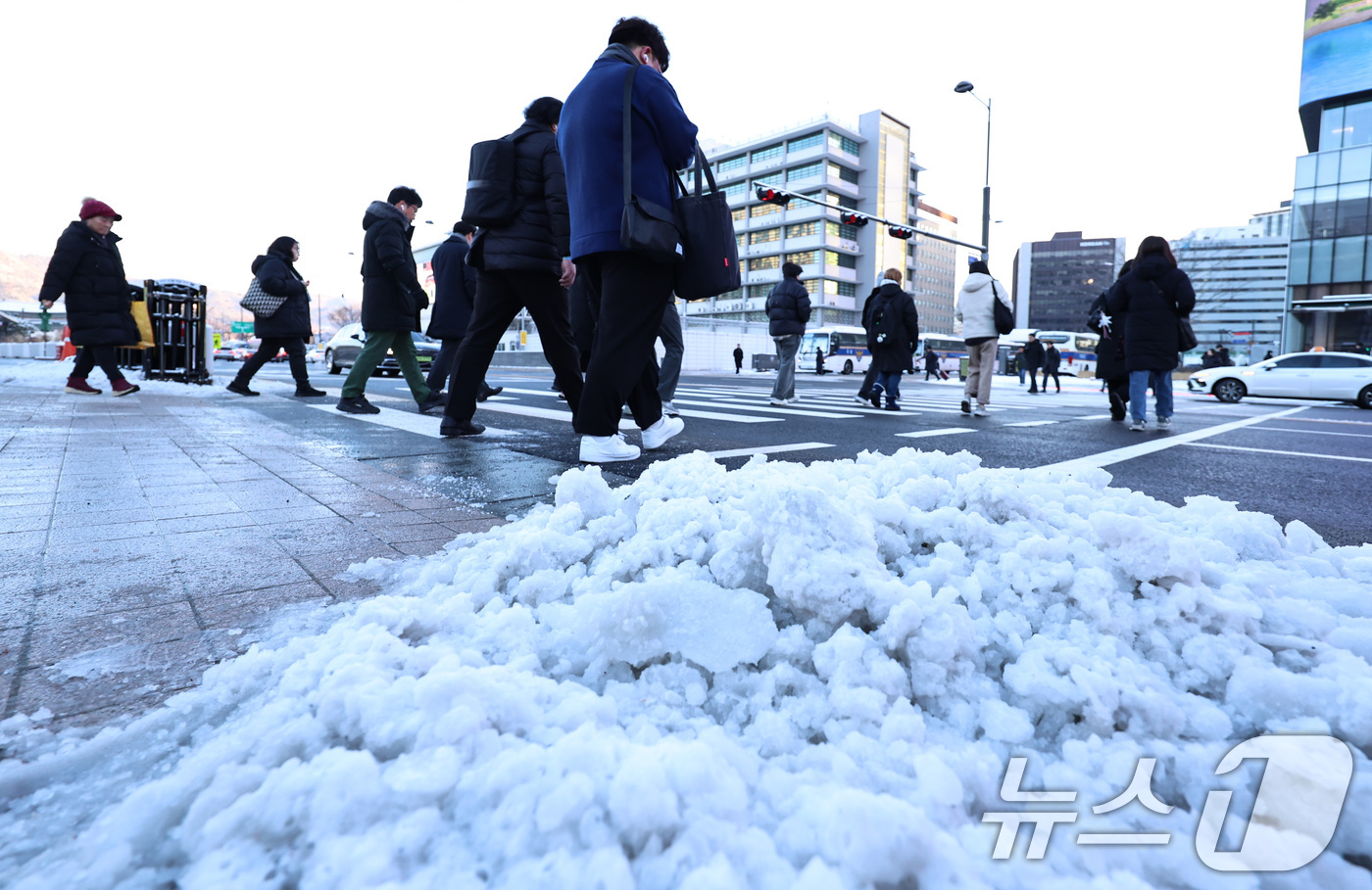 폭설 후 한파로 도로 곳곳이 얼어붙은 5일 오전 서울 광화문역 일대에서 시민들이 출근길 발걸음을 옮기고 있다. 2025.12.5/뉴스1 ⓒ News1 구윤성 기자 |