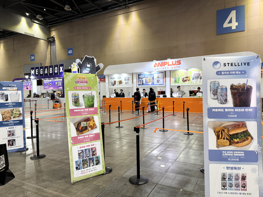 12월 5일, 일산 킨텍스에서 열린 'AGF 2025'에서 애니플러스의 콜라보 카페가 운영되고있다. 우마무스메, 스텔라이브 등 콜라보 메뉴가 판매된다. 사진= 이코노믹리뷰 김연제 기자