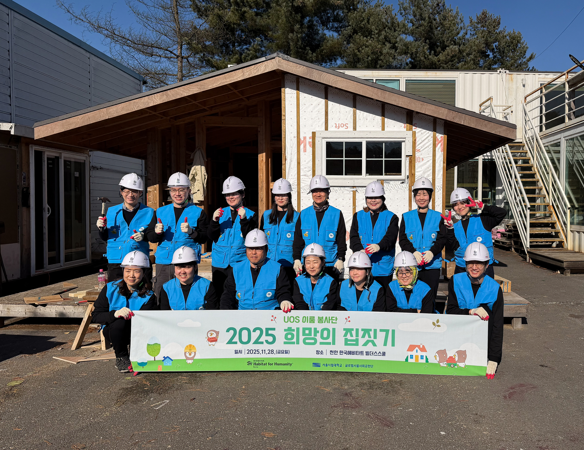 서울시립대학교(총장 원용걸)는 지난 11월 28일 교직원 15명이 한국해비타트가 운영하는 ‘희망의 집짓기’ 프로그램에 참여해 주거 취약계층을 위한 주택 건축 지원 활동을 진행했다고 밝혔다.