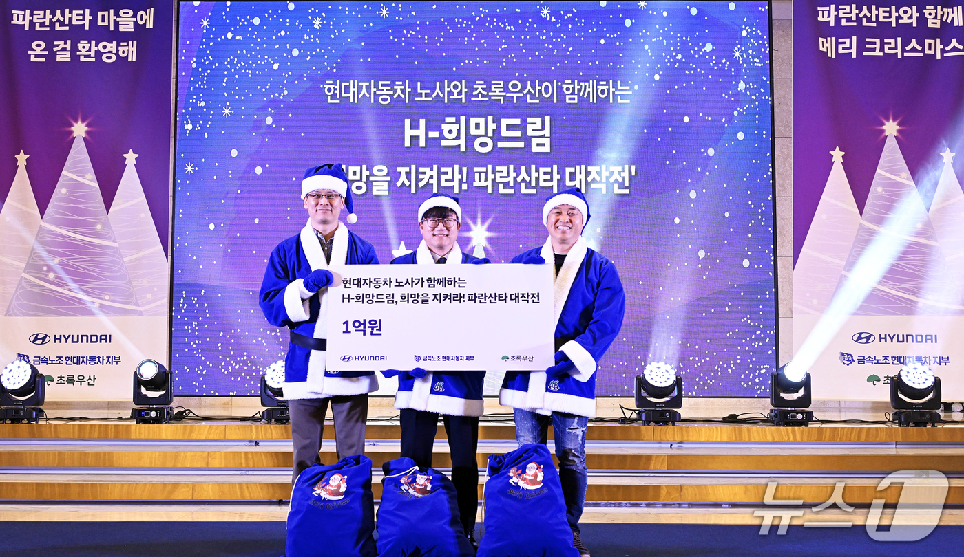 현대자동차 노사는 5일 울산 북구 JW컨벤션에서 초록우산어린이재단에 1억 원을 기탁했다.(현대자동차 제공. 재판매 및 DB금지)/뉴스1 |