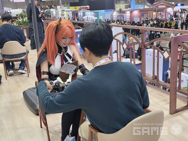 이 한계를 의식한 듯, 지난 지스타 2025에서는 색다른 장면이 연출됐다. 폐막 시간이 다가오는 금요일 오후, 지스타 광장에는 수많은 코스어가 팬들과 둘러싸여 사진을 찍고 있었다. 일부 코스어는 직접 셀카를 찍어줄 정도로 적극적이었고, 인기 코스어의 경우 대기줄이 30~40분에 이를 정도였다. 약 20개 팀의 코스어가 광장을 가득 채우며 팬들과 활발히 소통하는 모습이 인상적이었다.