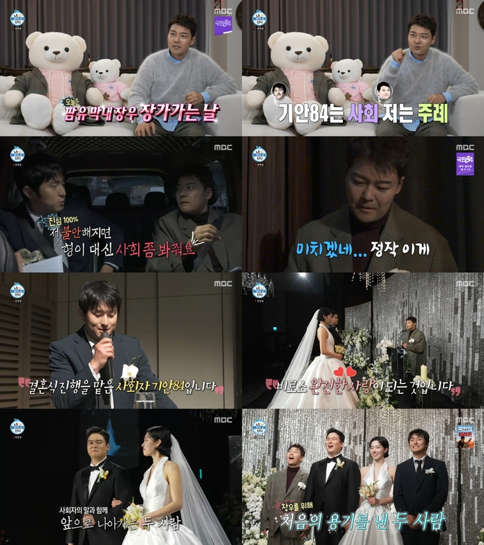 전현무, 기안84는 각자의 자리에서 멘트 연습에 돌입했다. 전현무는 “긴장되는 게 남의 인생이 걸려 있어서 그렇다. 신랑, 신부, 아버지, 어머니가 우리만 의지하지 않냐. 누가 도와줄 수가 없으니까”라고 이야기했다.