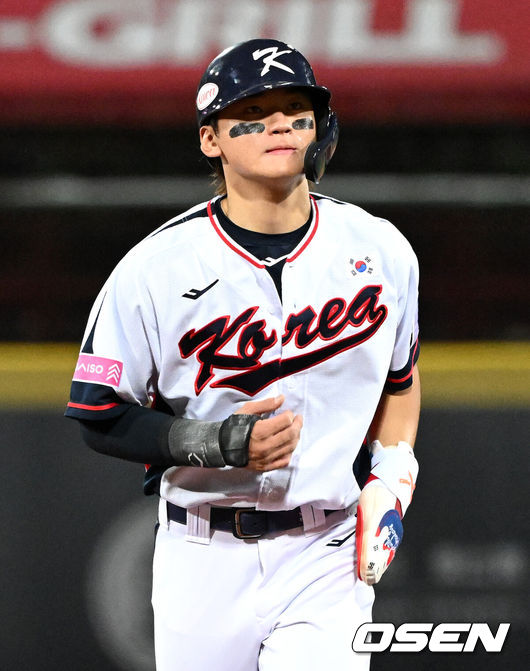 [OSEN=도쿄(일본), 조은정 기자] 한국 야구 대표팀이 한일전 첫 번째 경기에서 뼈아픈 역전패를 허용했다. 2023년 WBC(월드베이스볼클래식)에 이어서 또 한 번 마운드의 차이를 여실히 느꼈다.한국은 15일 일본 도쿄도 도쿄돔에서 열린 ‘2025 NAVER K-BASEBALL SERIES’ 일본과의 1차전에서 4-11역전패를 당했다. 이날 패배로 한국은 성인 대표팀 경기에서 2015년 프리미어12 준결승 4-3 승리 이후일본에 10연패(아시안게임 제외)를 당하고 말았다.4회초 무사 1루에서 대한민국 안현민이 선제 2타점 좌중월 투런포를 날린 뒤 베이스를 돌고 있다. 2025.11.15. /cej@osen.co.kr |