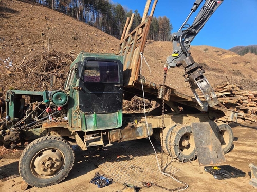 (원주=연합뉴스) 유형재 기자 = 벌목 차량을 수리하던 60대가 차량 적재함에 깔려 숨졌다.