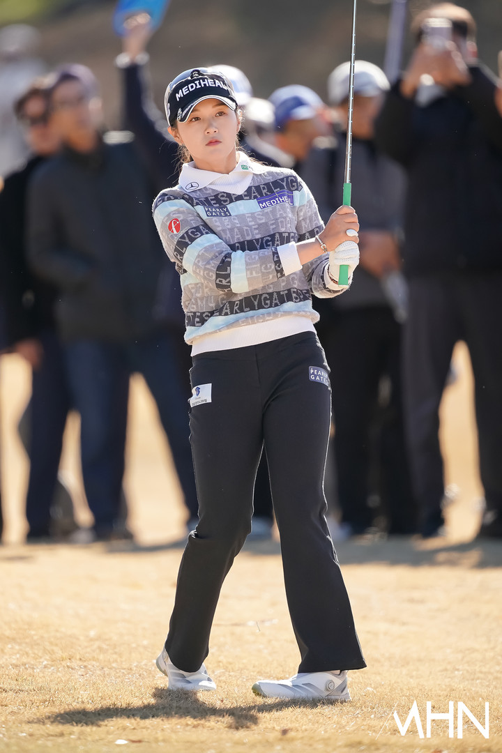 메디힐 박현경과 롯데 황유민 2경기가 열린 가운데, 박현경이 6번홀 경기를 펼치고 있다.