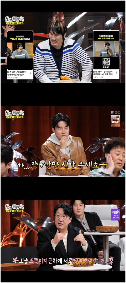 [OSEN=오세진 기자] ‘놀면 뭐하니?’ 최홍만이 지난주 방영분으로 썸 타는 상대와 한층 더 깊어졌다고 말했다.