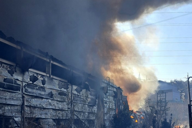 현재까지 공장 건물 세 동이 모두 탔고, 한 동이 일부 탔다.