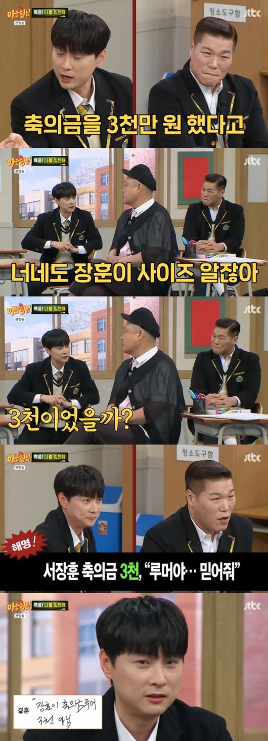 민경훈은 “장훈이 사이즈 알지 않냐. 3천이었을까 3억이었을까”라고 너스레를 떨었고, 서장훈은 “그게 칭찬하는 거랑 무슨 상관이냐”라고 당황스러워했다.