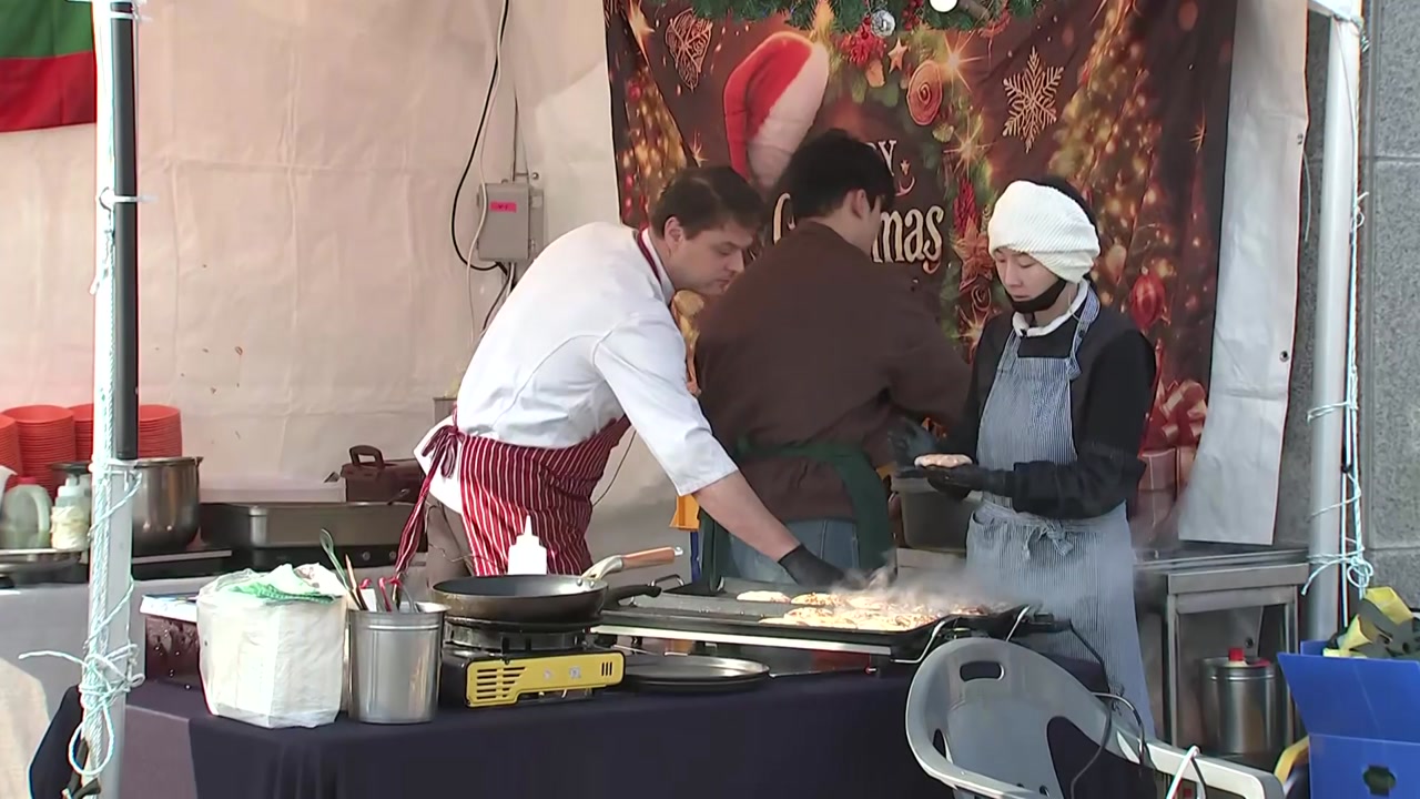 [진재덕(진규희·진규민) / 서울 신천동 : 여기 오니까 정말 성탄절 분위기가 많이 느껴지는 것 같아요. 해외 각국 나라 사람들도 계시고, 음식도 나라별로 많이 차려져 있는데 맛있는 것 같아요.]