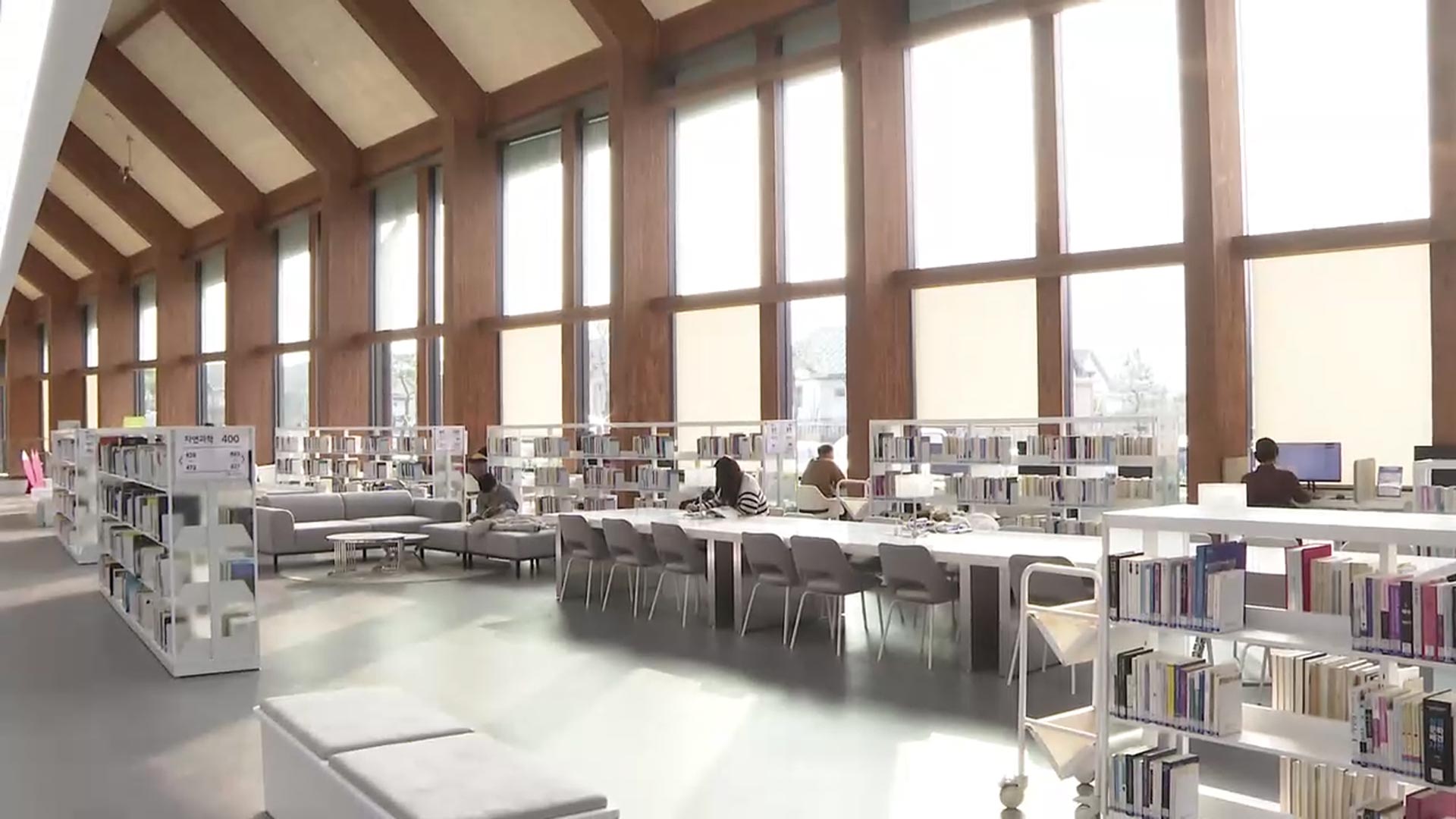 도서관 설계는 유명 건축가 유현준 교수가 맡았으며 유네스코 세계유산인 종묘 정전에서 영감을 받아 목구조로 만들었습니다.