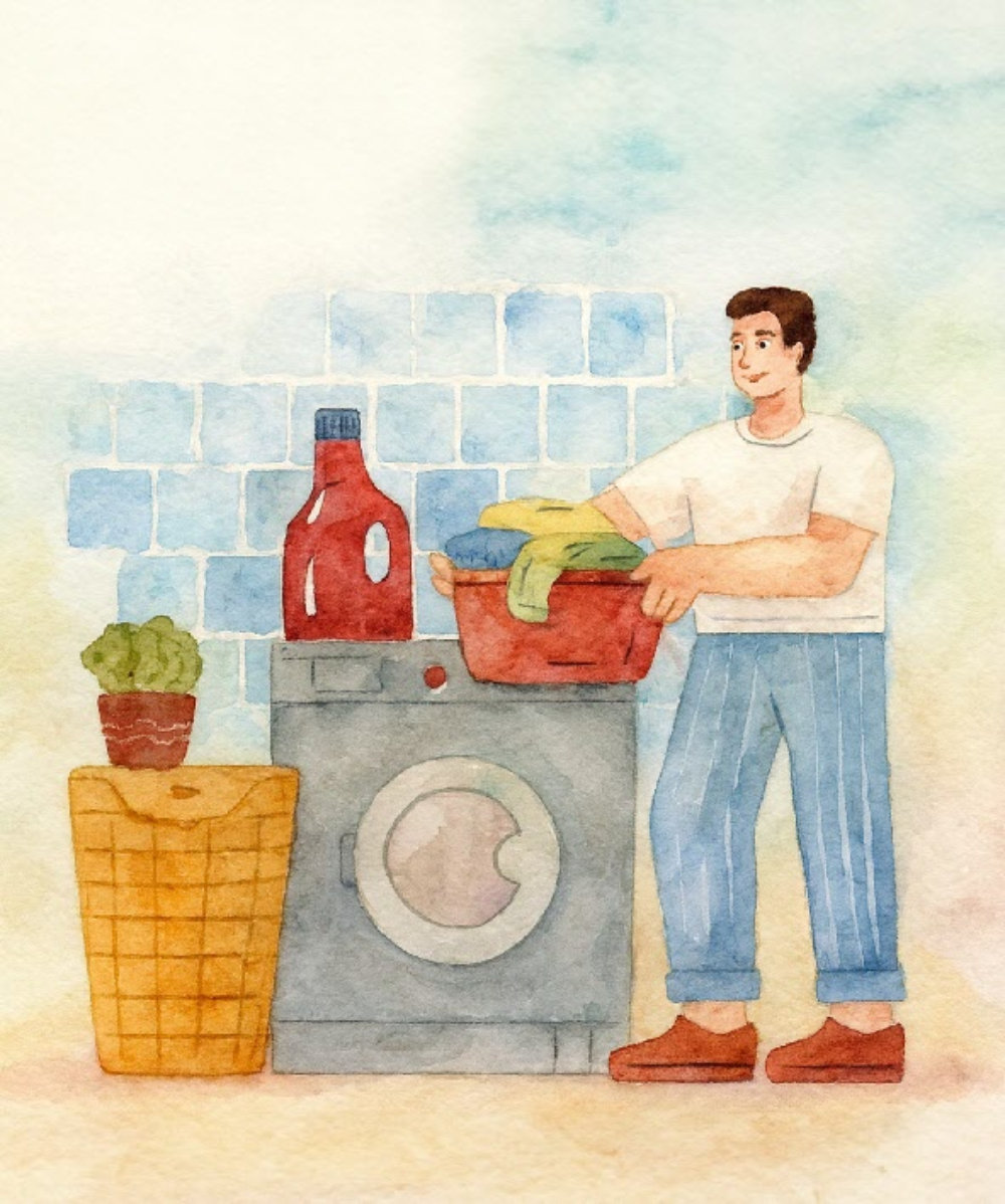 독신의 살림은 간단하다. 빨래와 청소와 조리 정도. 빨래는 세탁기가 해준다. 청소는 진공청소기로. 식사도 솥밥이나 면류 등 한 그릇으로 끝나는 간편한 종류로 준비한다. 간단한 살림을 꾸리려 미리 머리를 쓴다. 옷은 애초에 세탁이 편한 면섬유 위주로 산다. 음식도 오래 보관할 수 있는 것들을 두고, 사둔 음식이나 식재료는 먹을 만큼만 사서 버려지는 게 없도록 한다.