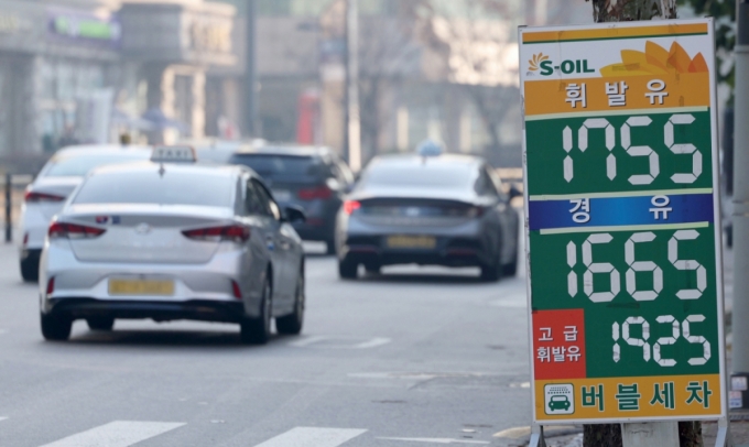 국내 기름값이 6주 연속 상승한 7일 서울의 한 주유소에 휘발유와 경유 가격이 게시되어 있다. /사진=뉴시스