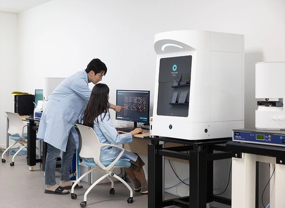 토모큐브 연구진이 자체 개발한 '홀로토모그래피 현미경'으로 세포를 관찰하고 있다. 사진 토모큐브
