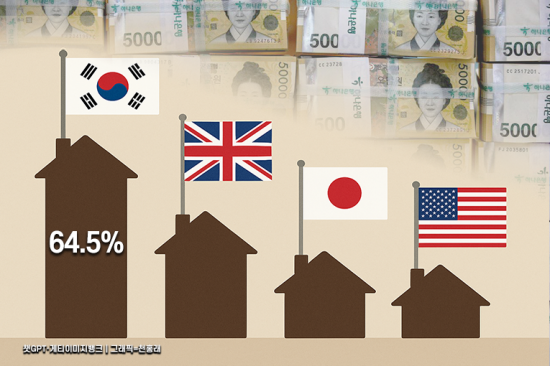 최근 5년(2020~2024년) 간 가계 자산 구조를 분석한 결과, 지난해 한국의 비금융자산(부동산 등) 비중은 64.5%로 주요국(한국·미국·일본·영국) 가운데 가장 높았다. 금융자산 내에서는 현금성 자산 편중이 두드러졌다. 국내 가계의 금융자산 중 현금·예금 의존도는 2020년에 비해 높아진 반면(2020년 43.4%→2024년 46.3%), 증권·채권·파생금융상품 등 투자 관련 자산의 비중은 줄어든 것(2020년 25.1%→2024년 24.0%)으로 나타났다.