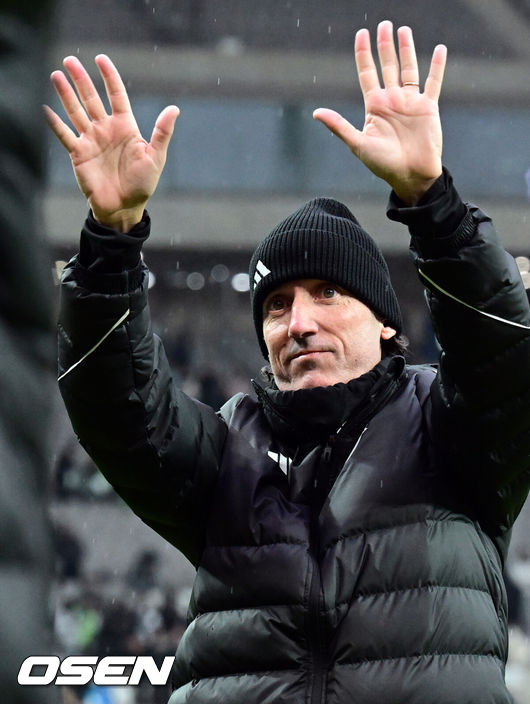 [OSEN=상암월드컵경기장, 조은정 기자] 전북현대가 끝내 정상에 섰다. 연장전 혈투 끝에 광주FC를 2-1로 꺾고 2025 하나은행 코리아컵 우승을 차지했다. 120분 동안 퇴장·부상·논란 상황이 뒤섞인 결승전이었지만, 마지막에 웃은 팀은 전북이었다.전북현대는 6일 오후 1시 30분 서울월드컵경기장에서 열린 2025 하나은행 코리아컵 결승전에서 광주FC와 맞붙어 2-1로 승리했다.전북 타노스 코치가 서포터즈를 향해 인사하고 있다. 2025.12.06 /cej@osen.co.kr |