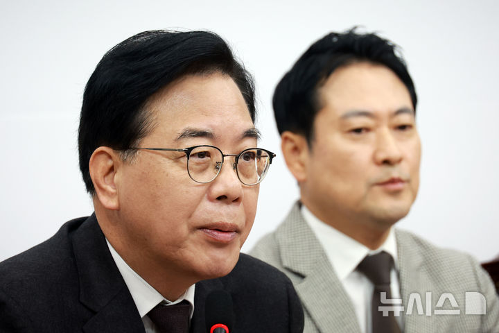 [서울=뉴시스]김지훈 우지은 한은진 기자 = 송언석 국민의힘 원내대표는 8일 "민주당 통일교 금품수수 의혹에 대한 전면 재수사를 (민중기 특별검사에) 강력히 촉구한다"고 말했다.