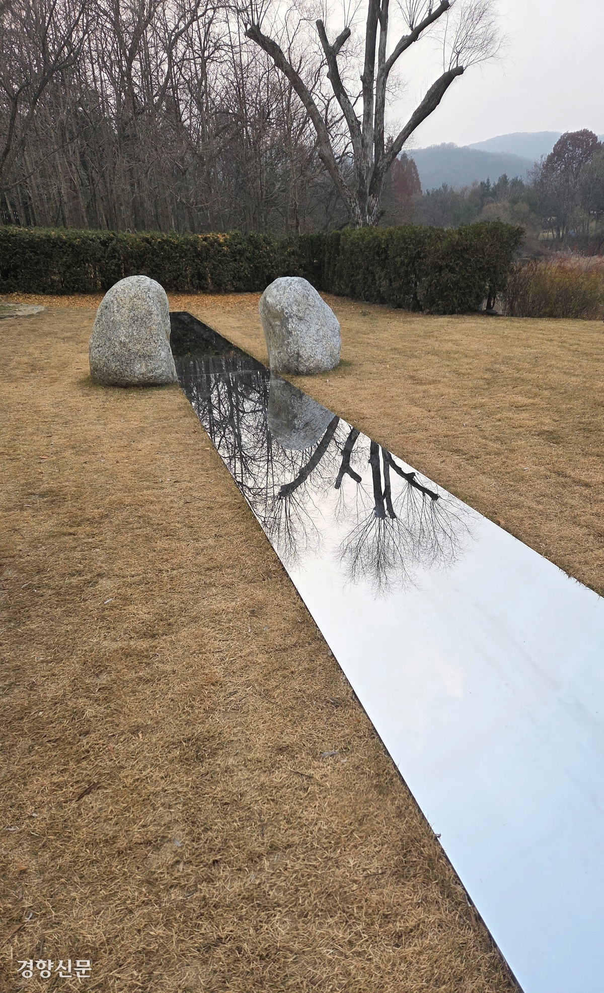 이우환이 경기 용인시 호암미술관 옛돌정원에 설치한 ‘관계항-만남’(2025). 윤승민 기자 |