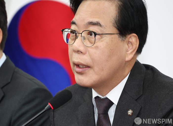 [서울=뉴스핌] 최지환 기자 = 송언석 국민의힘 원내대표가 8일 오전 서울 여의도 국회에서 열린 최고위원회의에서 발언하고 있다. 2025.12.08 choipix16@newspim.com