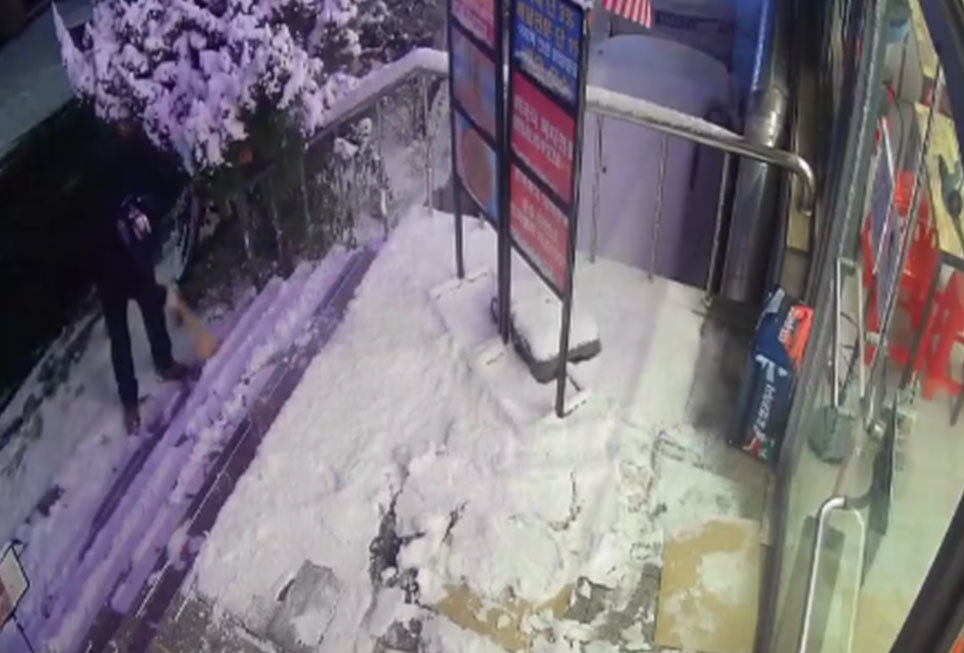 영상에는 배달 기사가 피자를 포장해가기 위해 기다리는 동안, 가게 앞에 쌓인 눈을 빗자루로 치우는 모습이 담겼다. 그는 약 13분 동안 눈을 정리하며 주변을 깨끗하게 만들었다.